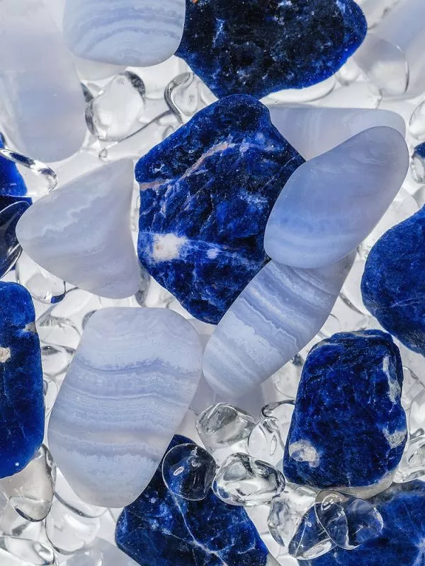 Sodalite is traditionally used by crystal healing experts to support mental balance, calmness and inner peace. It’s said to support expressing your thoughts and is therefore also known as the Poet’s Stone. This attribute is wonderfully complemented by blue chalcedony, which is also called the Speaker’s Stone. Wise men (including the great Roman speaker and philosopher Cicero) used it when they carefully had to measure their words. Chalcedony also stands for reflection and meditation. What could be more useful in these hectic times?