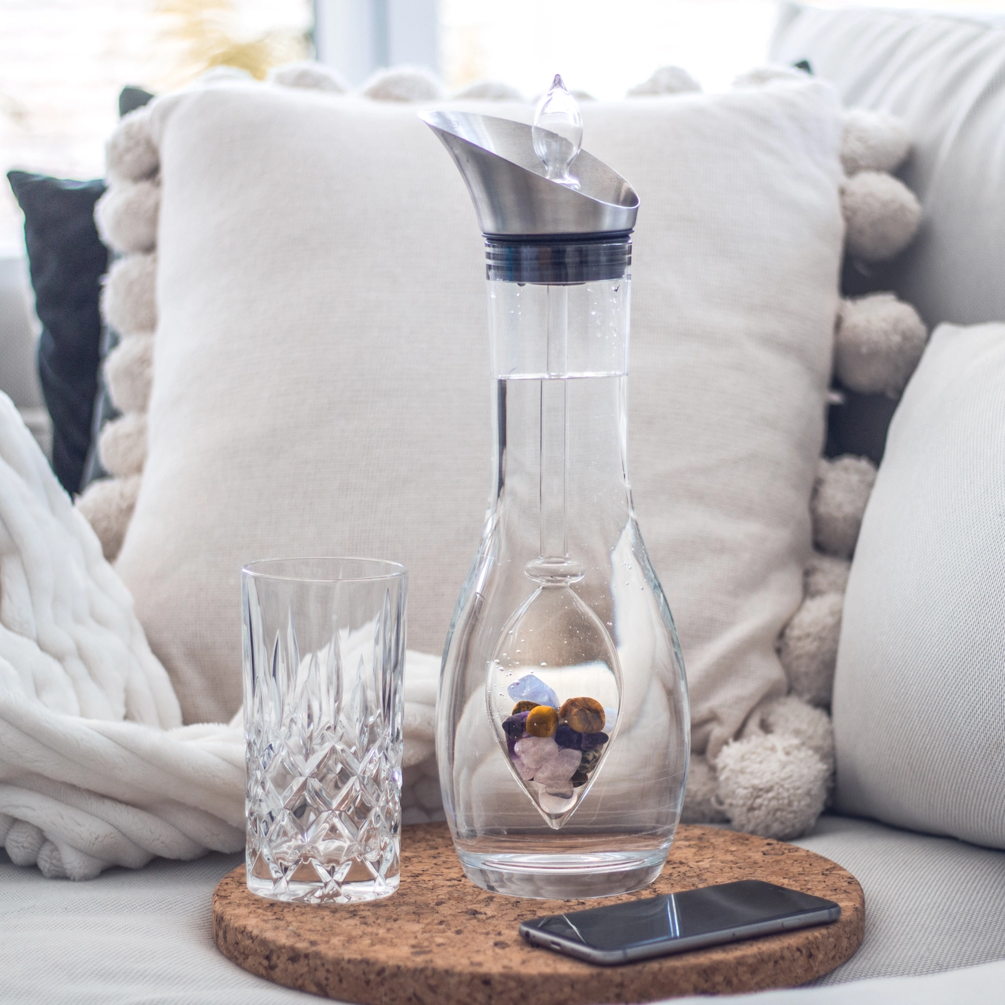 Care instructions: handwash gemstone vial, decanter dishwasher-proof.