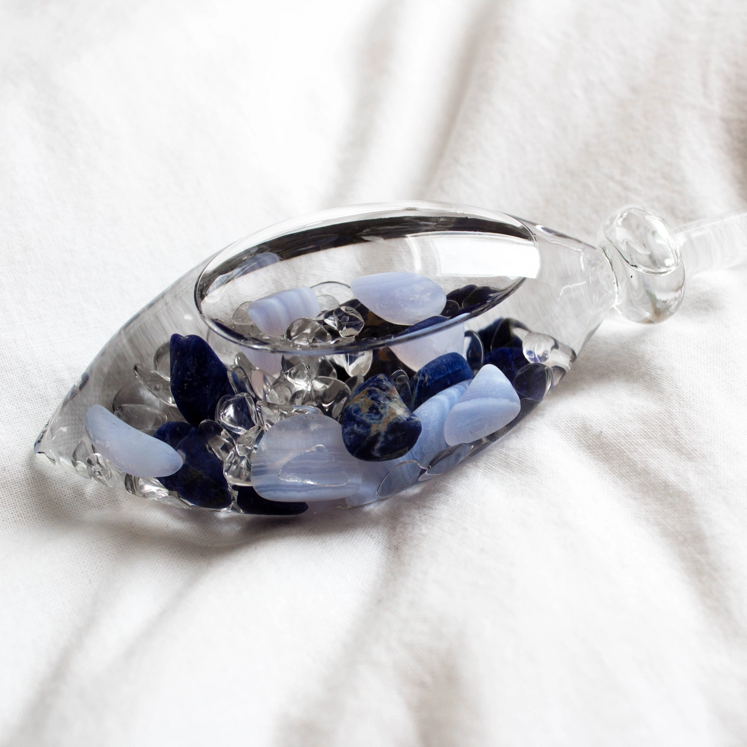 Sodalite is traditionally used by crystal healing experts to support mental balance, calmness, and inner peace. It’s said to support expressing your thoughts and is therefore also known as the poet’s stone. This attribute is wonderfully complemented by blue chalcedony, which is also called the speaker’s stone. Wise men (including the great Roman speaker and philosopher Cicero) used it when they carefully had to measure their words. Chalcedony also stands for reflection and meditation. What could be more useful in these hectic times?