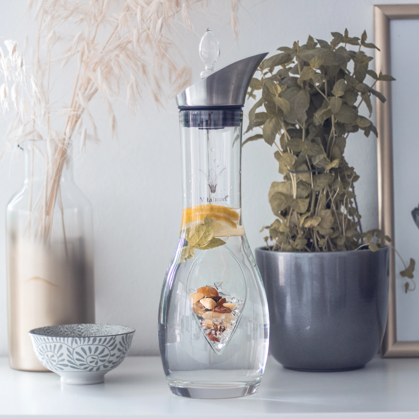 VitaJuwel happiness – gemwater set for home (decanter era + gemstone vial happiness).