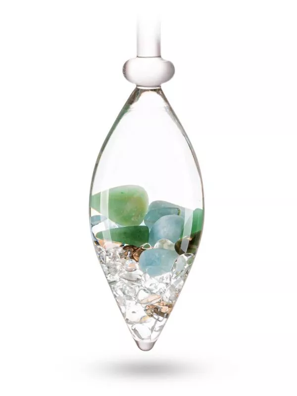Our Gemstone Vials are traditionally hand-crafted in a patented, artisanal method by master glassblowers in Bohemia, using lead-free glass and hand-picked gems. VitaJuwel Gemstone Vials are available in several carefully selected gemstone blend variations, based on ancient crystal healing traditions and aiming at specific attributes.