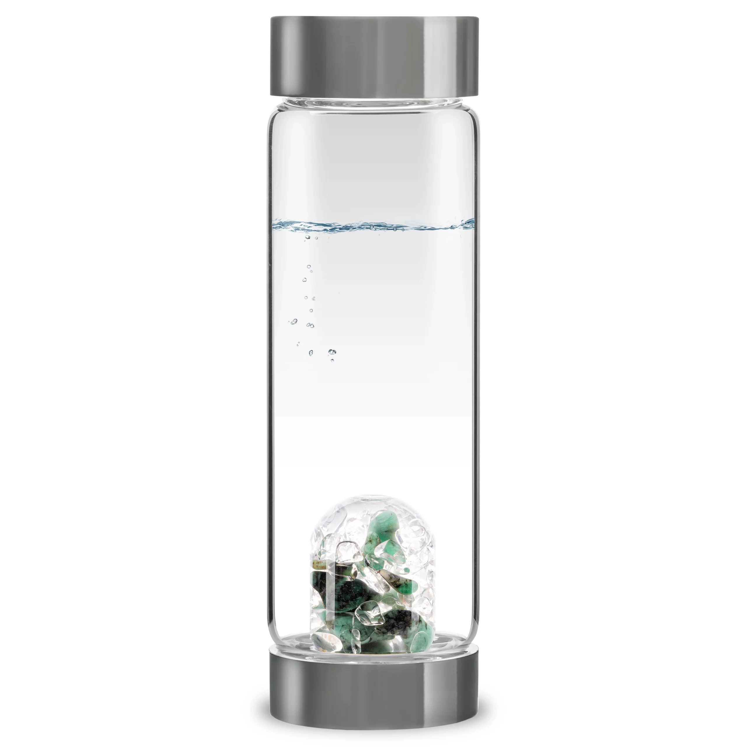 Designed in the German Alps, the VIA bottle features a variety of carefully hand-selected gemstones and is made from premium borosilicate, pollutant-free glass. Perfect for everyday use, as the gems are encased in a hand-crafted, interchangeable glass container that prevents any pollution of the water by the gems while preserving all their energetical benefits. The VitaJuwel method relieves you of bothersome scrubbing and cleaning of the gems. The exquisite stones in your ViA stay bright and shiny over the years.